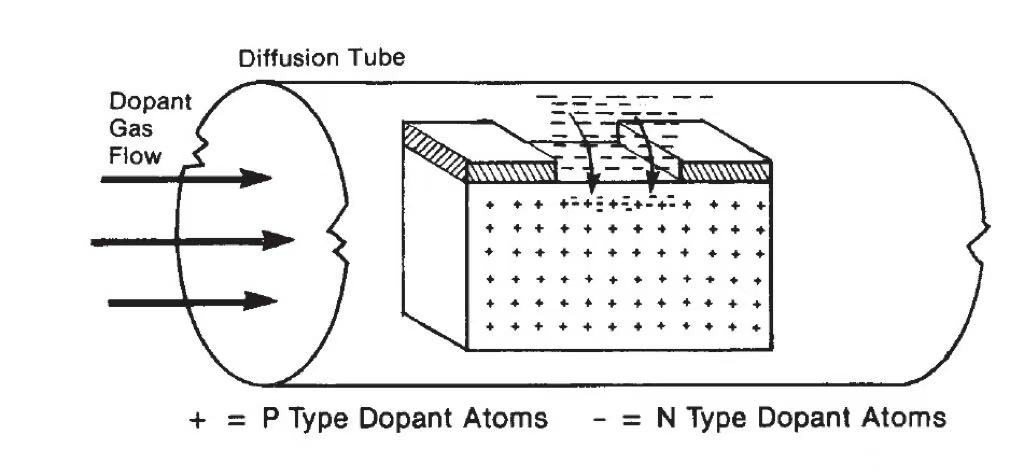 1. उच्च तापमान प्रसार सेमीकंडक्टर डोपिंग के लिए एक पारंपरिक विधि है। विचार यह है कि अर्धचालक को उच्च तापमान पर उपचारित किया जाए, जिससे अशुद्धता परमाणु अर्धचालक की सतह से उसके आंतरिक भाग में फैल जाते हैं। चूंकि अशुद्धता परमाणु आम तौर पर अर्धचालक परमाणुओं से बड़े होते हैं, इसलिए इन अशुद्धियों को अंतरालीय रिक्तियों पर कब्जा करने में मदद करने के लिए क्रिस्टल जाली में परमाणुओं की थर्मल गति की आवश्यकता होती है। प्रसार प्रक्रिया के दौरान तापमान और समय मापदंडों को सावधानीपूर्वक नियंत्रित करके, इस विशेषता के आधार पर अशुद्धता वितरण को प्रभावी ढंग से नियंत्रित करना संभव है। इस विधि का उपयोग गहरे डोप्ड जंक्शन बनाने के लिए किया जा सकता है, जैसे कि सीएमओएस तकनीक में डबल-वेल संरचना।