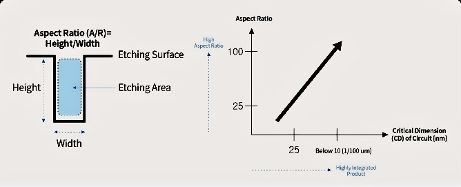 पहलू अनुपात, जैसा कि नाम से पता चलता है, नक़्क़ाशी की गहराई और एपर्चर की चौड़ाई का अनुपात है। एमईएमएस में 3डी उपकरणों के लिए पहलू अनुपात संरचनाएं एक मुख्य आवश्यकता हैं, और निचली दर में गिरावट से बचने के लिए गैस अनुपात और पावर नियंत्रण के माध्यम से इसे अनुकूलित किया जाना चाहिए।