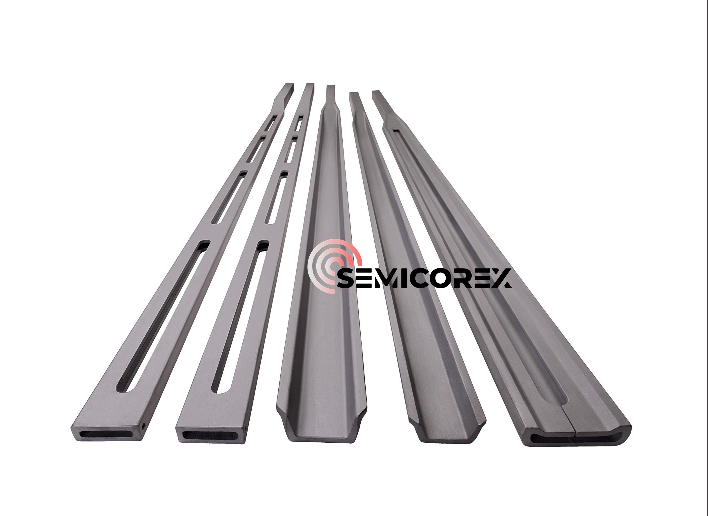मजबूत और विश्वसनीय होने के लिए डिज़ाइन किया गया, SiC पैडल कैंटिलीवर-प्रकार की भुजा है जो वेफर नौकाओं या वेफर स्टैक को रखती है। पैडल वेफर्स को तब सहारा देता है जब उन्हें प्रक्रिया कक्ष से डाला या हटाया जाता है। पारंपरिक सामग्रियां इन उच्च तापमानों पर विकृति, विकृति या रासायनिक गिरावट के कारण विफल हो जाती हैं। सिलिकॉन कार्बाइड की यांत्रिक स्थिरता और संरचनात्मक अखंडता पैडल को आकार या कार्य के नुकसान के बिना कई थर्मल चक्रों में जीवित रहने की अनुमति देती है। यह क्षमता भट्ठी के संरेखण को बनाए रखने, यह सुनिश्चित करने के लिए महत्वपूर्ण है कि प्रक्रिया के दौरान वेफर्स क्षतिग्रस्त न हों, और महंगे डाउनटाइम को कम करें।
